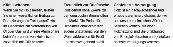 Heute, da die Vorräte an fossilen Brennstoffen zur Neige gehen, spielt Holz als Brennstoff wieder eine immer wichtiger werdende Rolle. Auch durch die Entwicklung moderner Heiztechnologien, die das "Heizen mit Holz" komfortabel und angenehm machen.